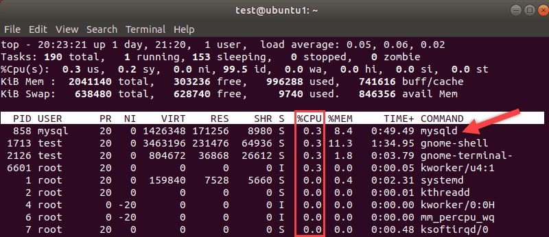 處理器通常被認(rèn)為是衡量系統(tǒng)速度的指標(biāo)。使用Linuxtop命令了解資源的使用情況。注意 MySQL 進程及其所需的處理器使用百分比。