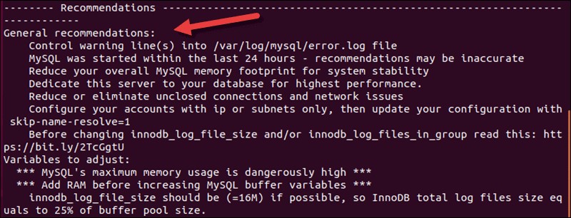 該腳本適用于 MySQL 8.x。日志文件建議是列表中的第一個,但如果您滾動到底部,您可以看到提高 MySQL 性能的一般建議。